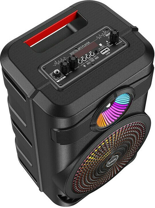 Φορητό Ηχείο Wireless Hoco BS46 Mature V5.0 10W, 18mAh, FM, USB & AUX θύρα, TWS και TF Card, με Μικρόφωνο Μαύρο. Αναπτύξτε την μουσική σας δημιουργικότητα με το πολύ ισχυρό ασύρματο ηχείο της Hoco το οποίο με το οποίο θα μπορείτε να συνδέσετε οποιαδήποτε εξωτερική πηγή ήχου από τις θύρες 3.5mm ή USB ή ακόμα και με κάποια κάρτα μνήμης και φυσικά με Bluetooth. Επιπλέον, διαθέτει υποδόχη για ενσύρματο μικρόφωνο και πλήκτρο ενεργοποιήσης πολύχρωμου φωτισμόυ για να απογειώσετε την διασκέδαση! Η διάρκεια λειτουργίας, χάρη στην μπαταρία των 1800mAh, φτάνει μέχρι και 3 ώρες με 2.5 ώρες φόρτισης. Το ηχείο είναι ιδιαίτερα ισχυρό και 8 Inch, 10W. Διαστάσεις: 381x236x203mm Βάρος: 1.9Kg